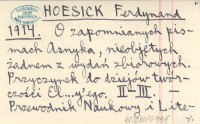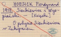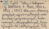 HOESICK Ferdynand [1920 a] Tatry i Zakopane. Przeszłość i teraźniejszość. Część druga. Od Zejsznera do Nowickiego.