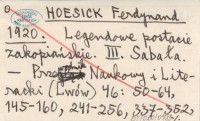 HOESICK Ferdynand 1920 Legendowe postacie zakopiańskie. III. Sabała.
