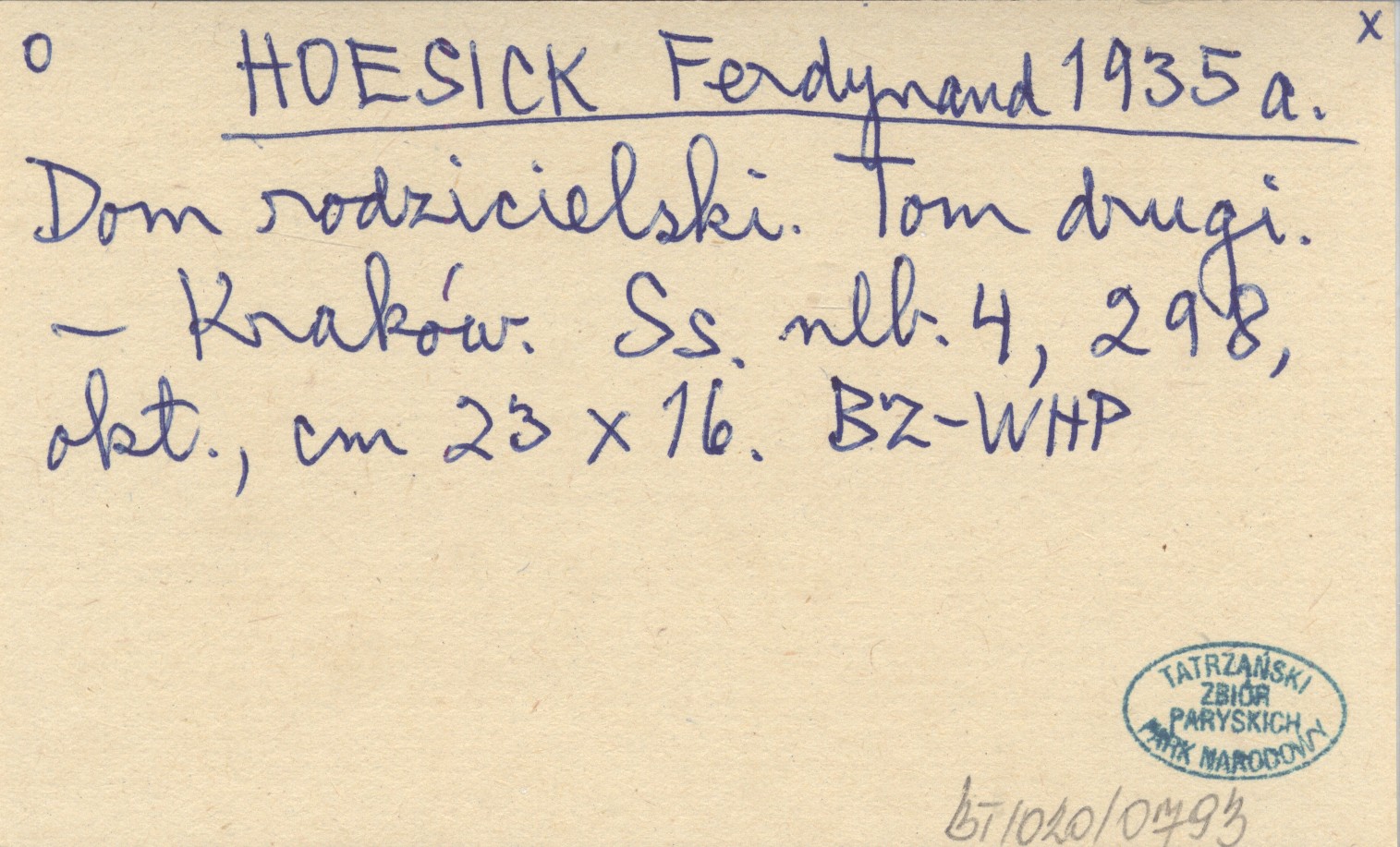 HOESICK Ferdynand 1935 a Dom rodzicielski. Tom drugi.