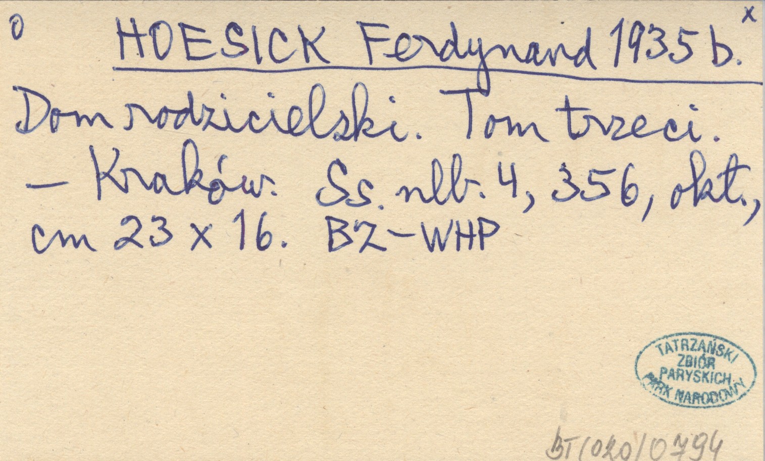 HOESICK Ferdynand 1935 b Dom rodzicielski. Tom trzeci.