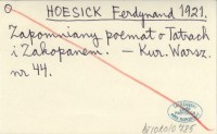 HOESICK Ferdynand 1921 Zapomniany poemat o Tatrach i Zakopanem.