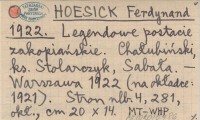 HOESICK Ferdynand 1922 Legendowe postacie zakopiańskie. Chałubiński, ks. Stolarczyk, Sabała.