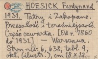 HOESICK Ferdynand 1931 Tatry i Zakopane. Przeszłość i teraźniejszość. Część czwarta. [Od r. 1960 do 1931].