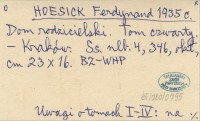 HOESICK Ferdynand 1935 b Dom rodzicielski. Tom trzeci.