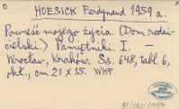 HOESICK Ferdynand 1959 a Powieść mojego życia. (Dom rodzicielski). Pamiętnik. I.