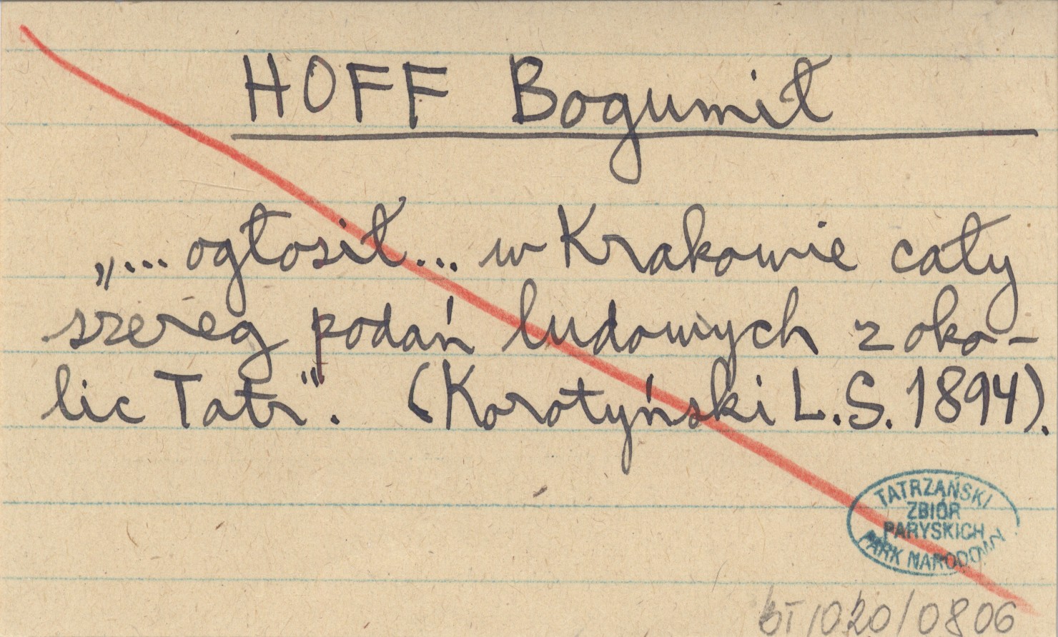 "...ogłosił... w Krakowie cały szereg podań ludowych z okolic Tatr". (Korotyński L. S. 1894).
