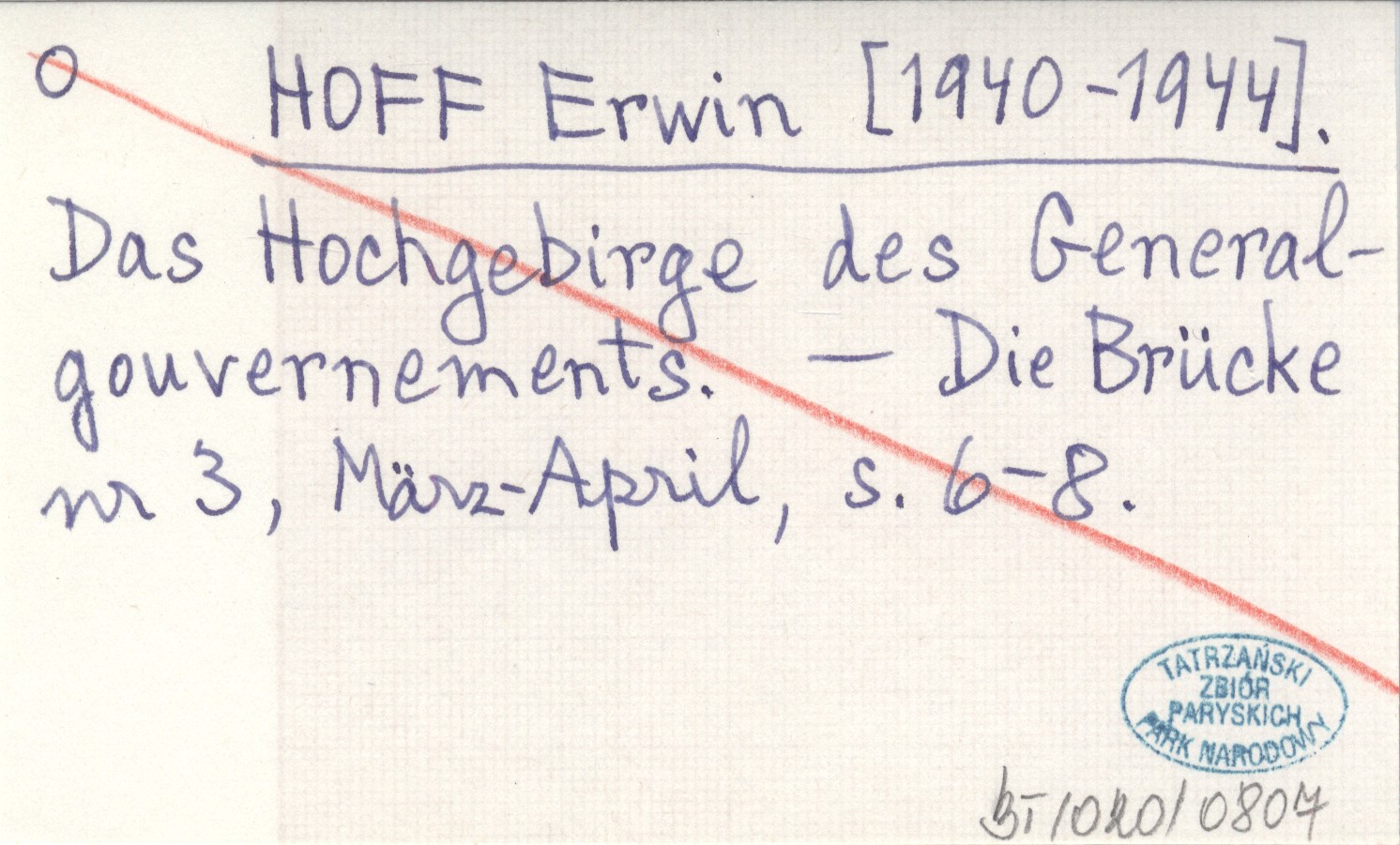 HOFF Erwin [1940-1944] Das Hochgebirge des Generalgouvernements.