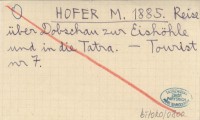 HOFER M. 1885 Reise über Dobschau zur Eishöhle und in die Tatra.