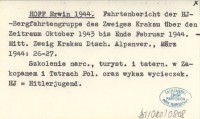 HOFF Erwin 1944 Fahrtenbericht der HJ-Bergfahrtengruppe des Zweiges Krakau über den Zeitraum Oktober 1943 bis Ende Februar 1944.