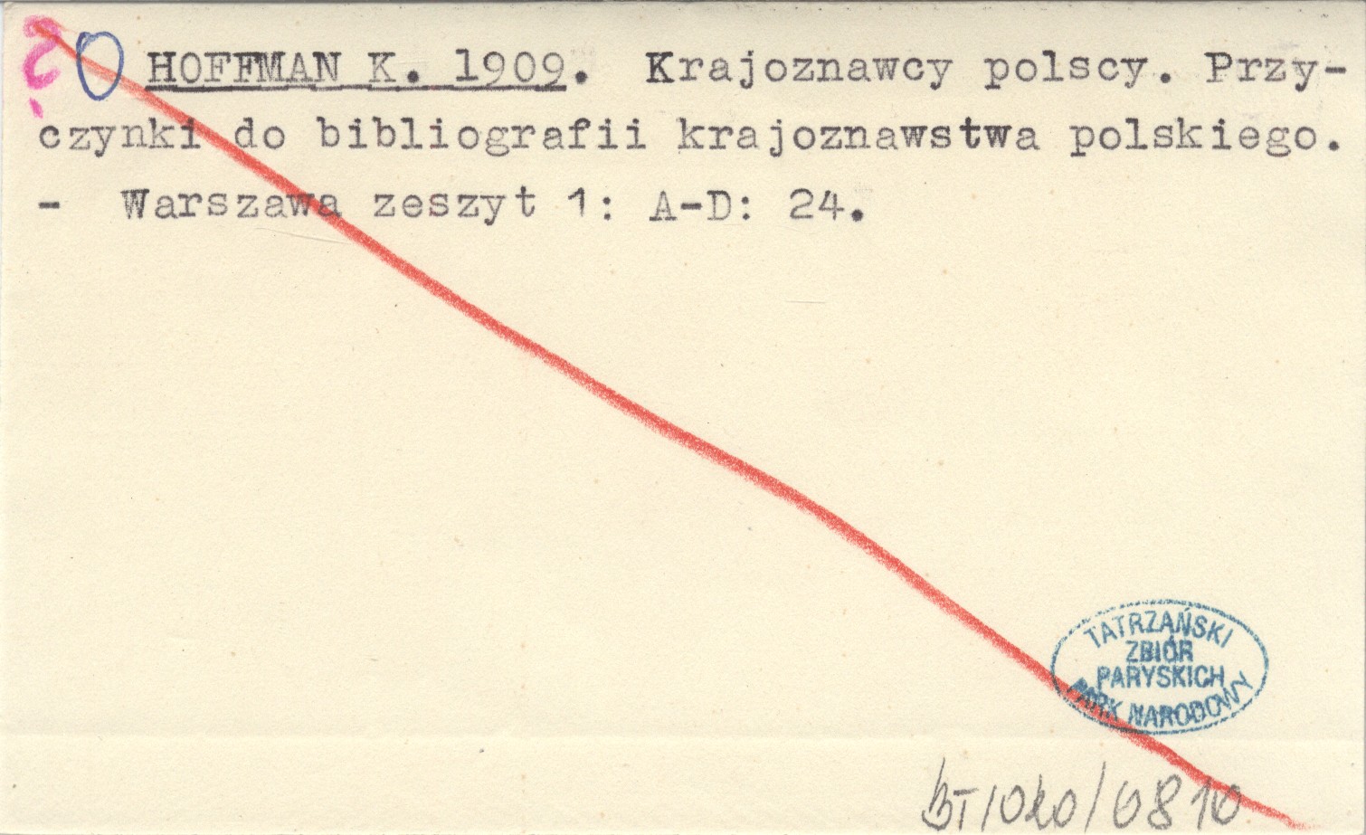 HOFFMAN K. 1909 Krajoznawcy polscy. Przyczynki do bibliografii krajoznawstwa polskiego.