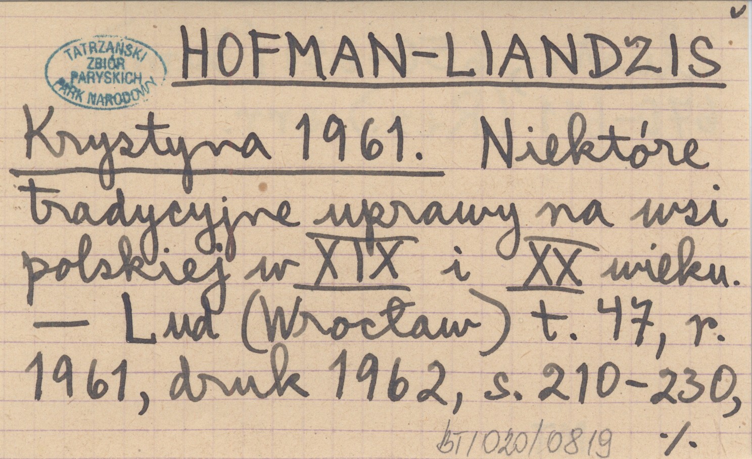 HOFMAN-LIANDZIS Krystyna 1961 Niektóre tradycyjne uprawy na wsi polskiej w XIX i XX wieku.