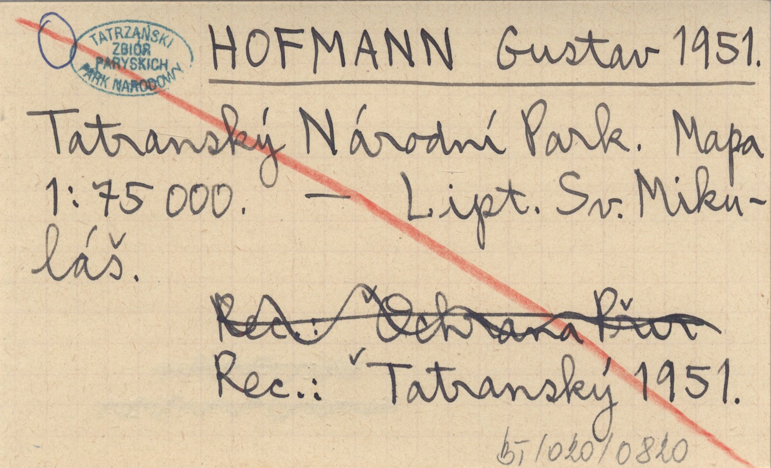 HOFMANN Gustav 1951 Tatranskę Národní Park. Mapa 1:75 000.