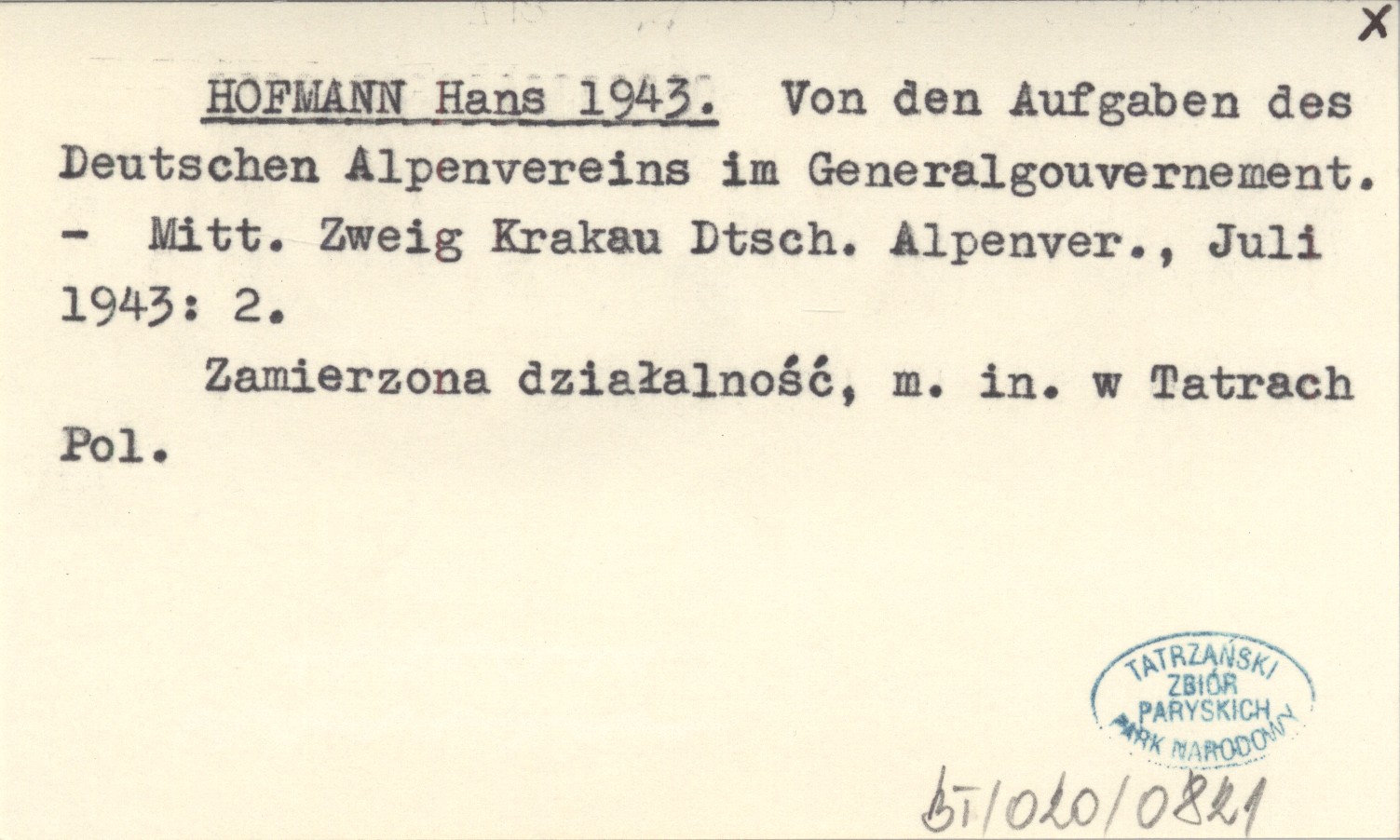HOFMANN Hans 1943 Von den Aufgaben des Deutschen Alpenvereins im Generalgouvernement.
