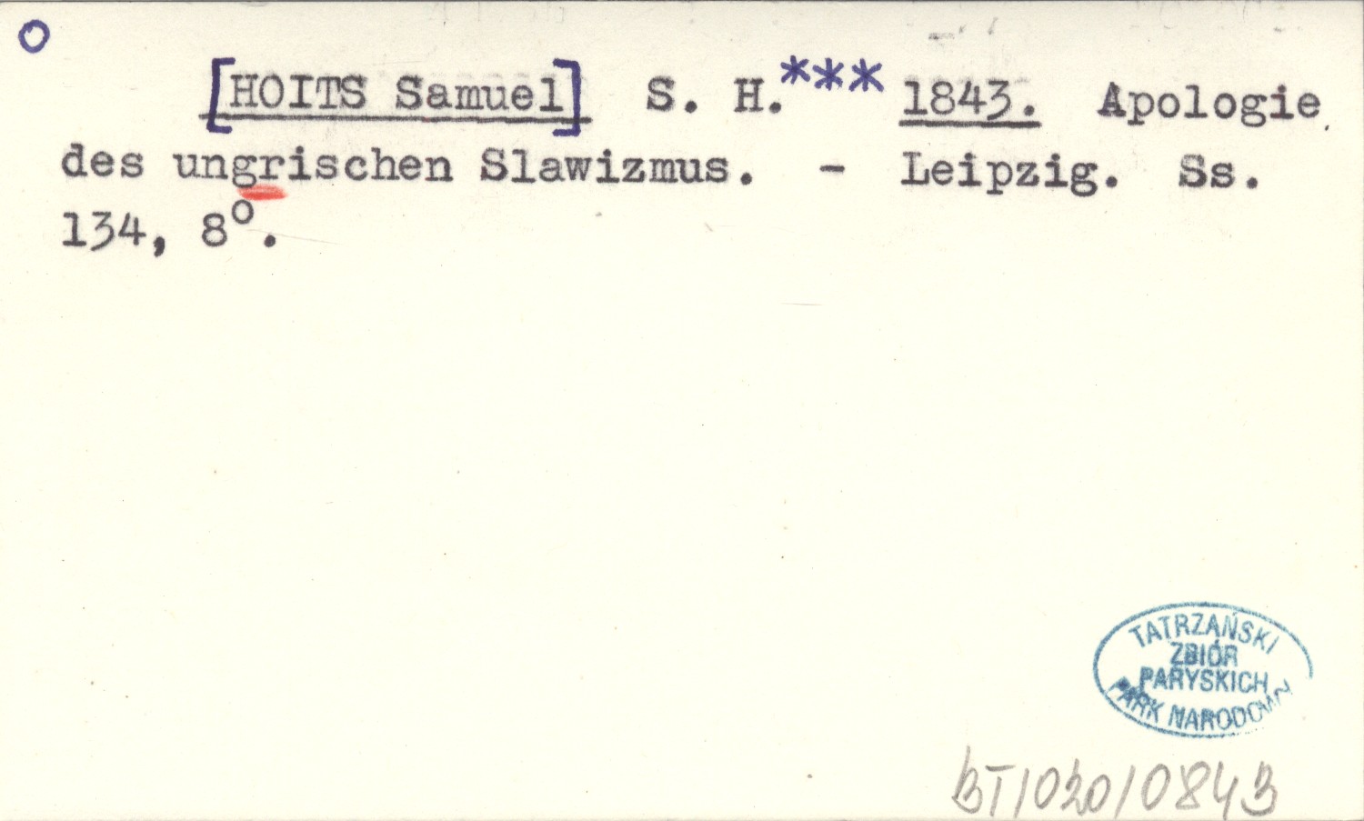 S. H. *** [HOITS Samuel] 1843 Apologie des ungrischen Slawizmus.