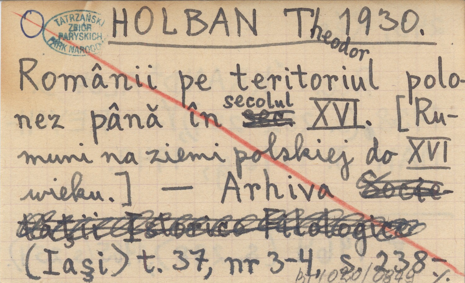 HOLBAN Theodor 1930 Românii pe teritoriul polonez până în secolul XVI. [Rumani na ziemi polskiej do XVI wieku].