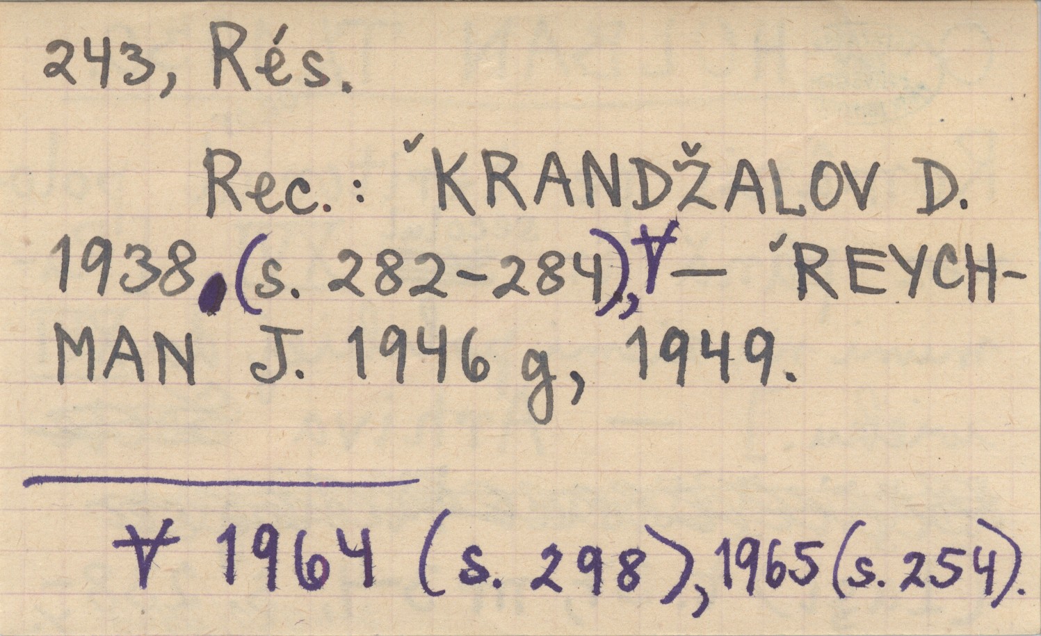 Archiva (Iasi) , T. 37, nr 3-4, S. 238-243, Rés. REC: KRANDŽALOV D. 1938 (S. 282-284), 1964 (S. 298), 1965 (S. 254). REYCHMAN J. 1946 g, 1949.