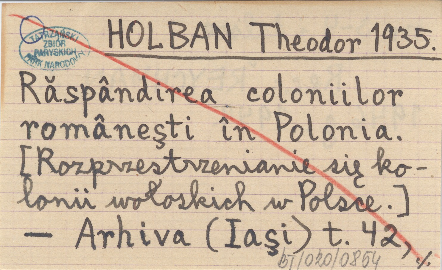 HOLBAN Theodor 1935 Răspândirea coloniilor românesti în Polonia. [Rozprzestrzenianie się kolonii wołoskich w Polsce].