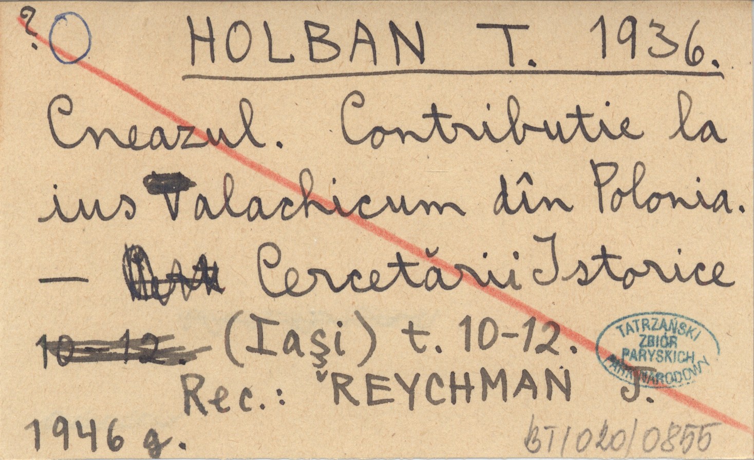 HOLBAN T. 1936 Cneazul. Contributie la ius valachicum dîn Polonia.