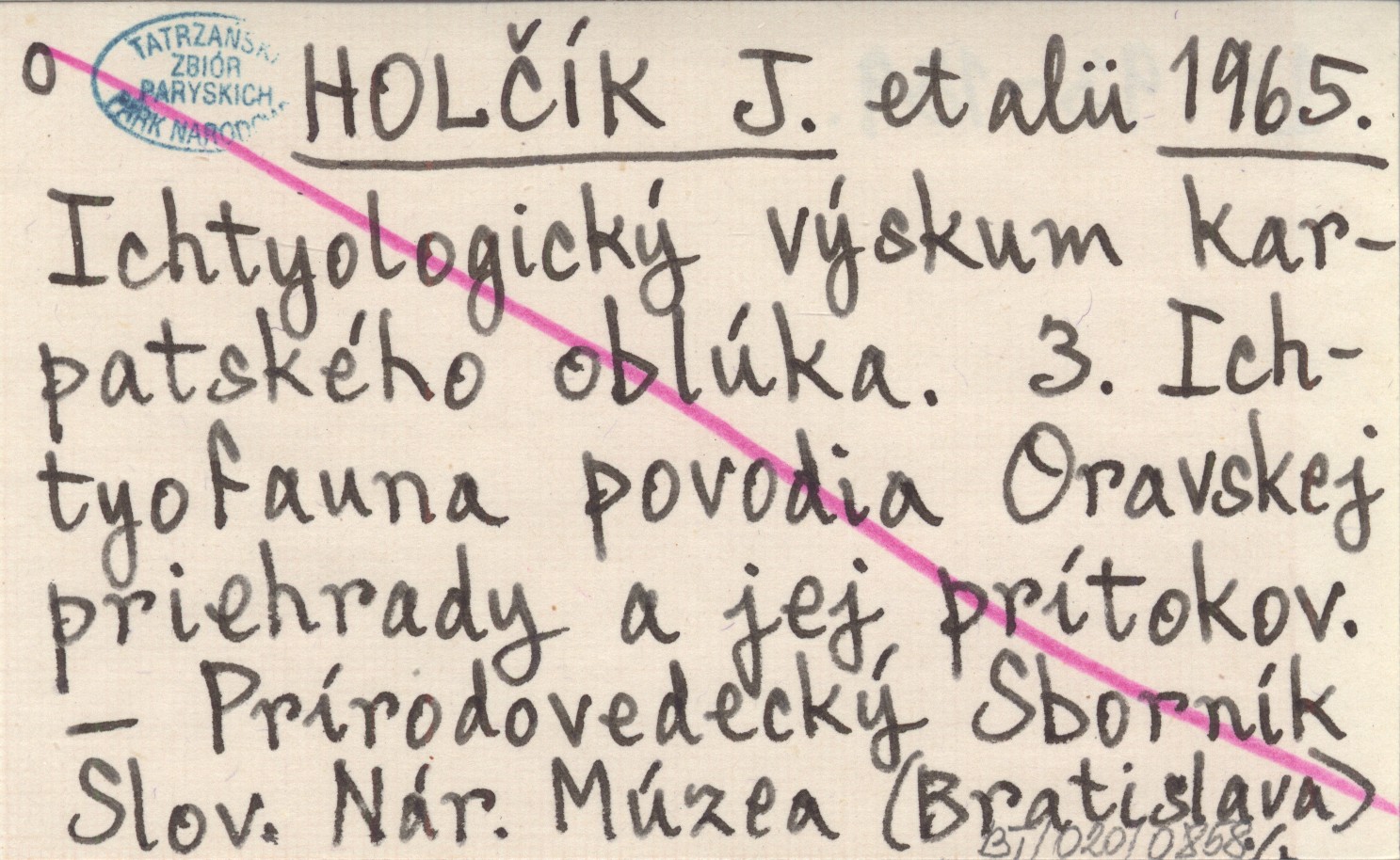 HOLČÍK J. i in. ; 1965 Ichtyologický výskum karpatského oblúka. 3. Ichtyofauna povodia Oravskej priehrady a jej prítokov.