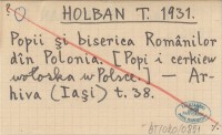 HOLBAN T. 1931 Popii si biserica Românilor dîn Polonia. [Popi i cerkiew wołoska w Polsce].