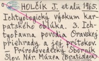 HOLČÍK J. i in. ; 1965 Ichtyologický výskum karpatského oblúka. 3. Ichtyofauna povodia Oravskej priehrady a jej prítokov.
