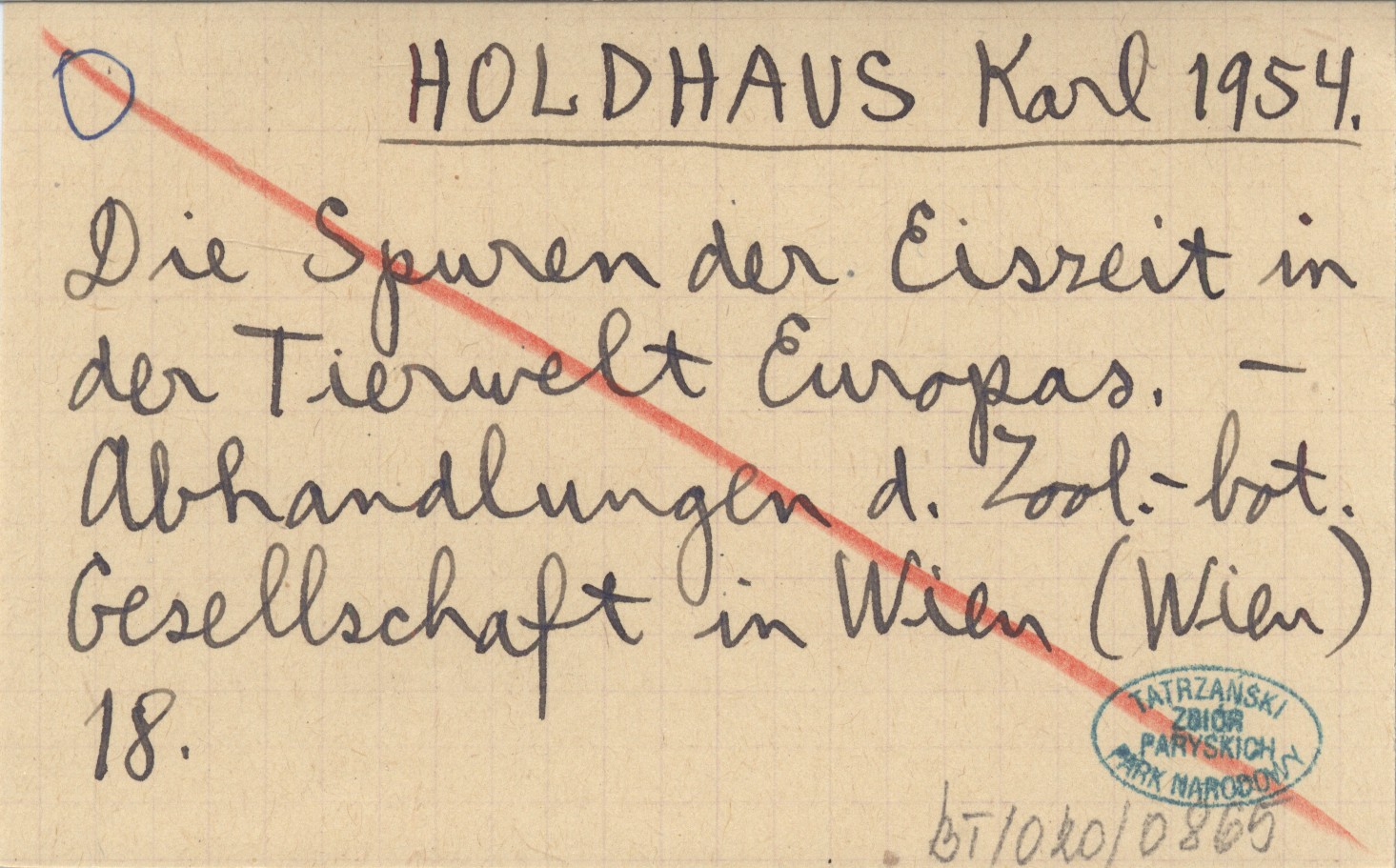 HOLDHAUS Karl 1954 Die Spuren der Eiszeit in der Tierwelt Europas.