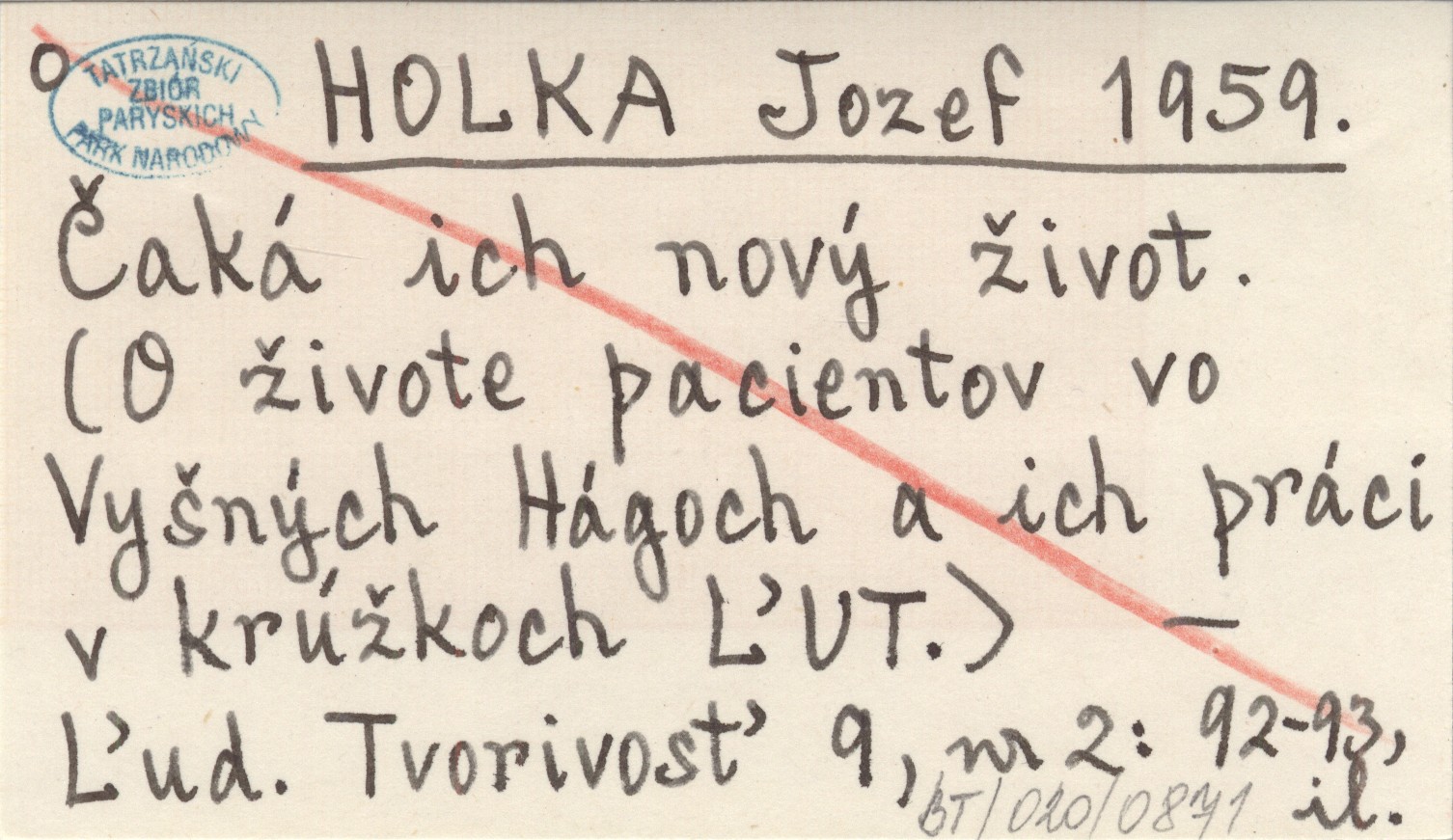HOLKA Jozef 1959 Èaká ich novę Ÿivot. (O Ÿivote pacoentov vo Vyčnęch Hágoch a ich práci v krúŸkoch „UT).