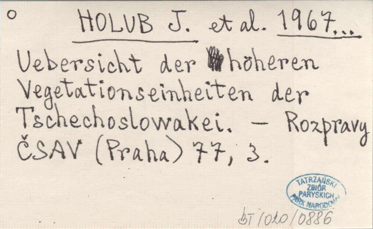 HOLUB J. i in. ; 1967... Uebersocht der höheren Vegetationseinheiten der Tschechoslowakei.