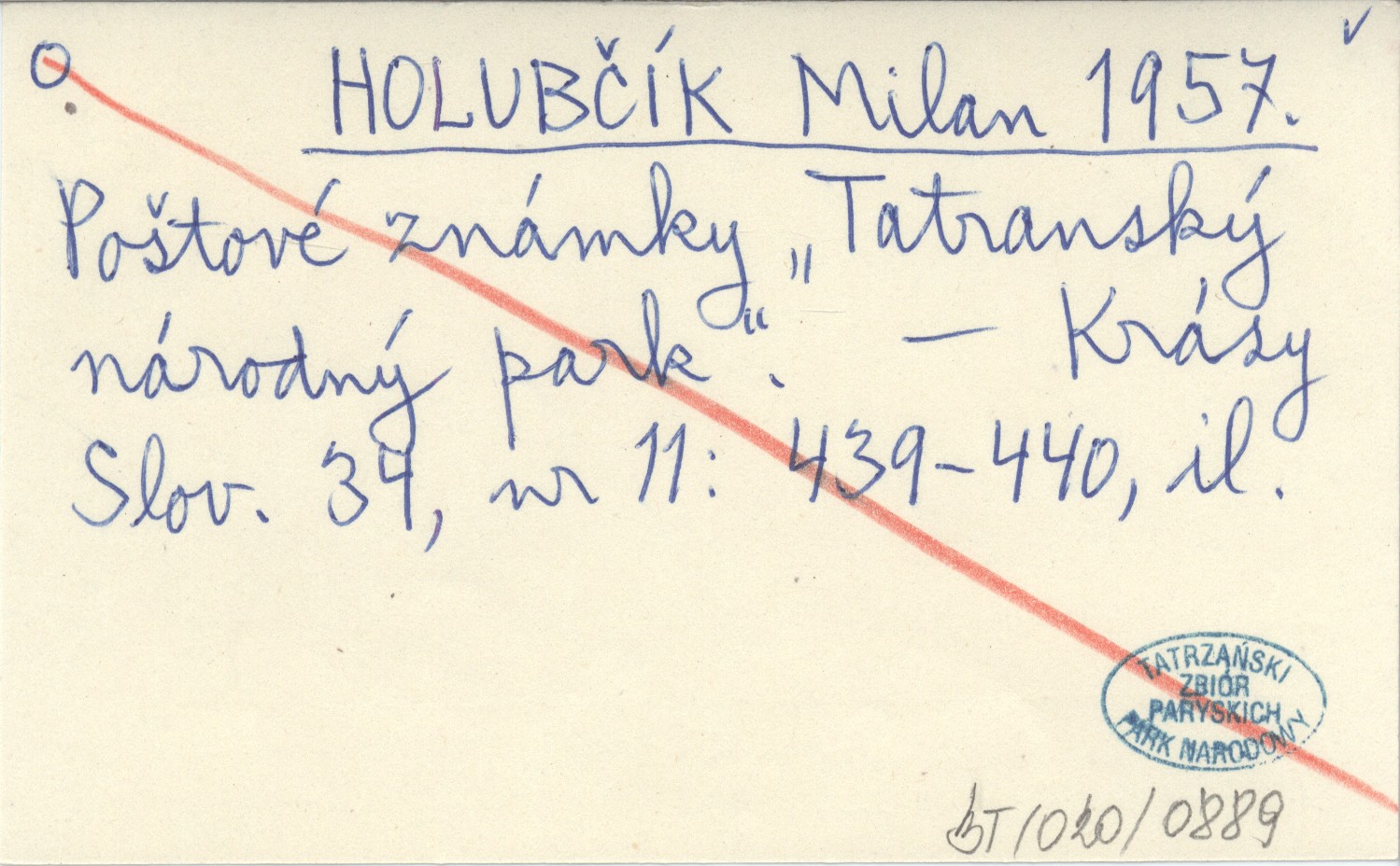 HOLUBČÍK Milan 1957 Poštové známky "Tatranský národný park".