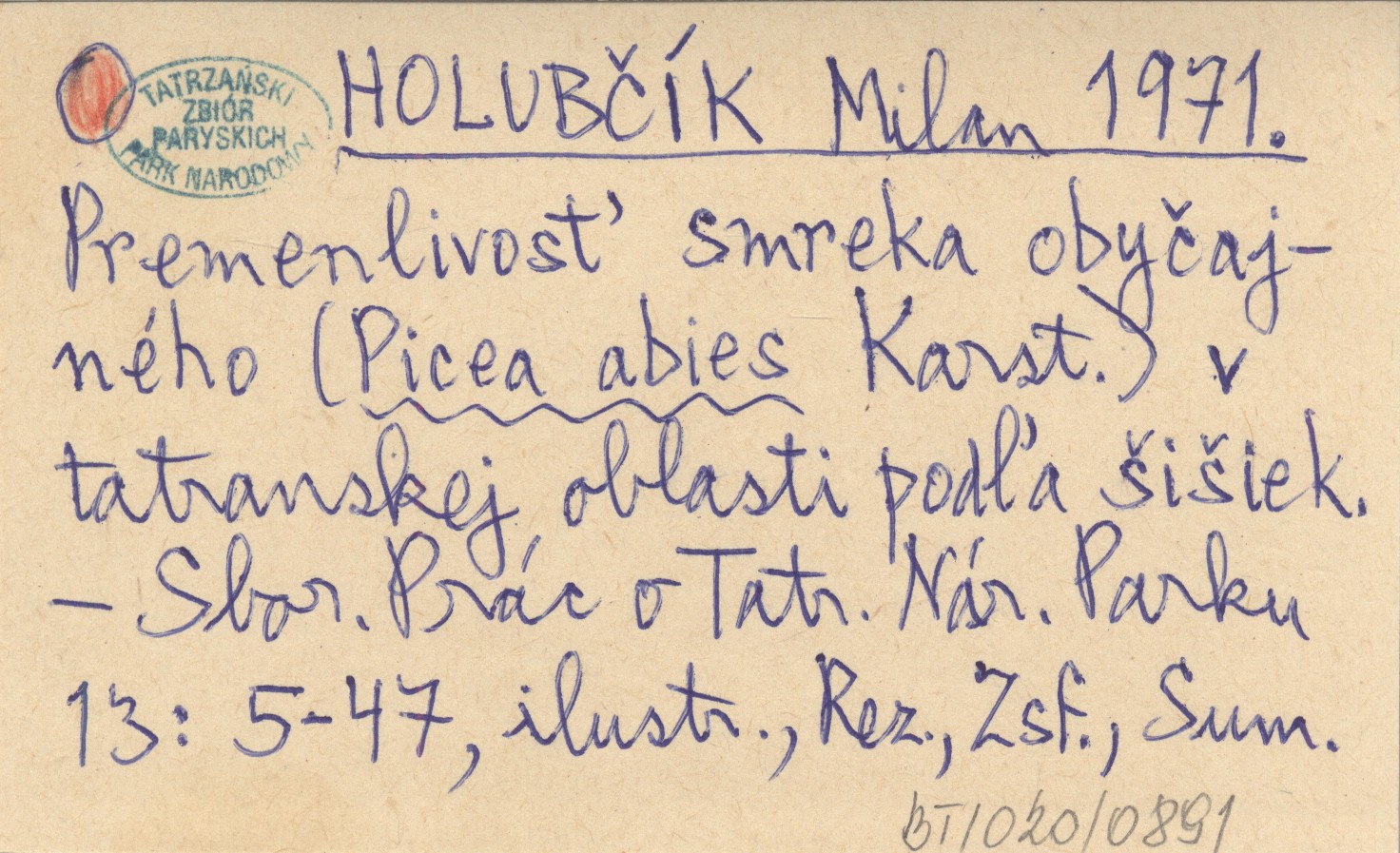 HOLUBČÍK Milan 1971 Premenlivosť smreka obyčajného (Picea abies Karst.) v tatranskej oblasti podľa šišiek.