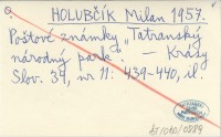 HOLUBČÍK Milan 1957 Poątové známky "Tatranský národný park".
