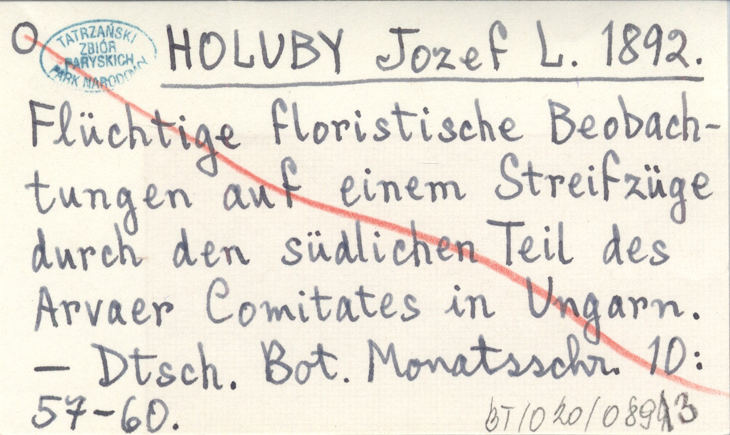 HOLUBY J. L. 1892 Flüchtige floristische Beobachtungen auf einem Streifzüge durch den südlichen Theil des Arvaer Comitates in Ungarn.
