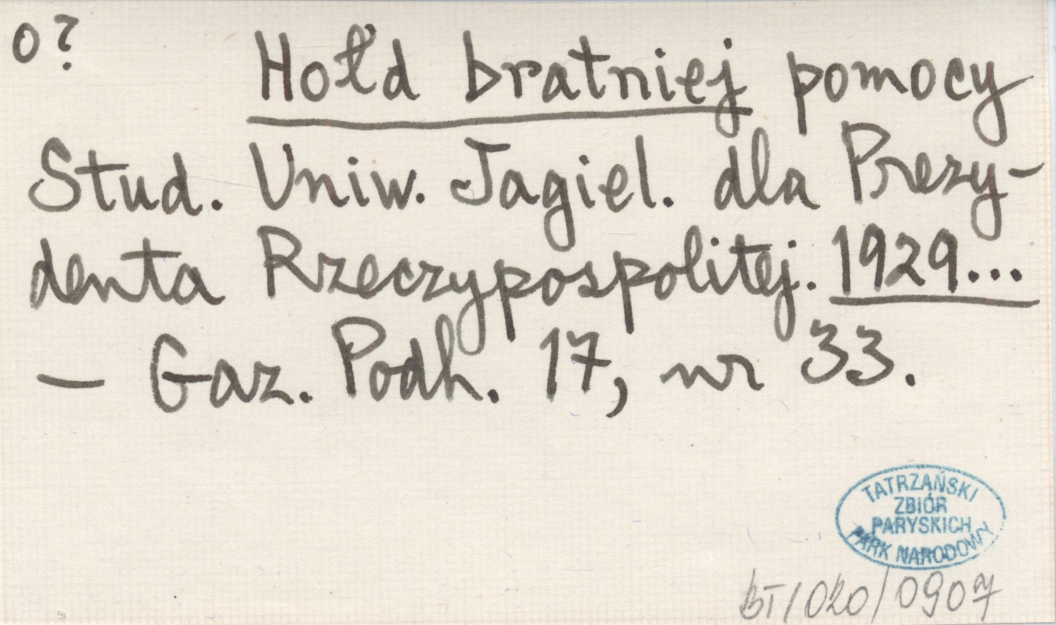 Hołd bratniej pomocy Studenckiej Uniwersytetu Jagiellońskiego dla Prezydenta Rzeczypospolitej. 1929...