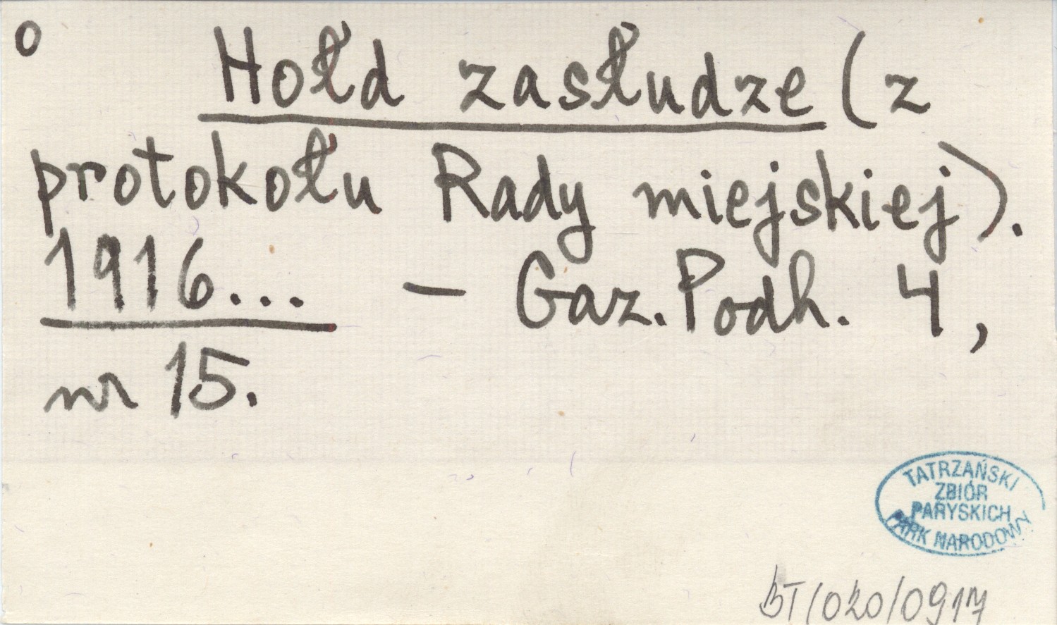 Hołd zasłudze (z protokołu Rafy miejskiej). 1916...