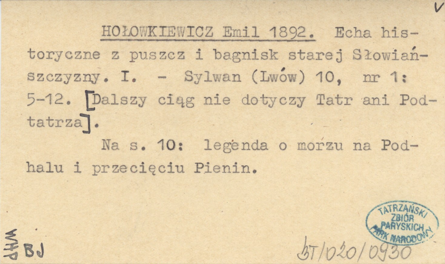 Sylwan (Lwów) , 10, nr 1: 5-12. Na S. 10: legenda o morzu na Podhalu i przecięciu Pienin. [Dalszy ciąg nie dotyczy Tatra ani Podtatrza].