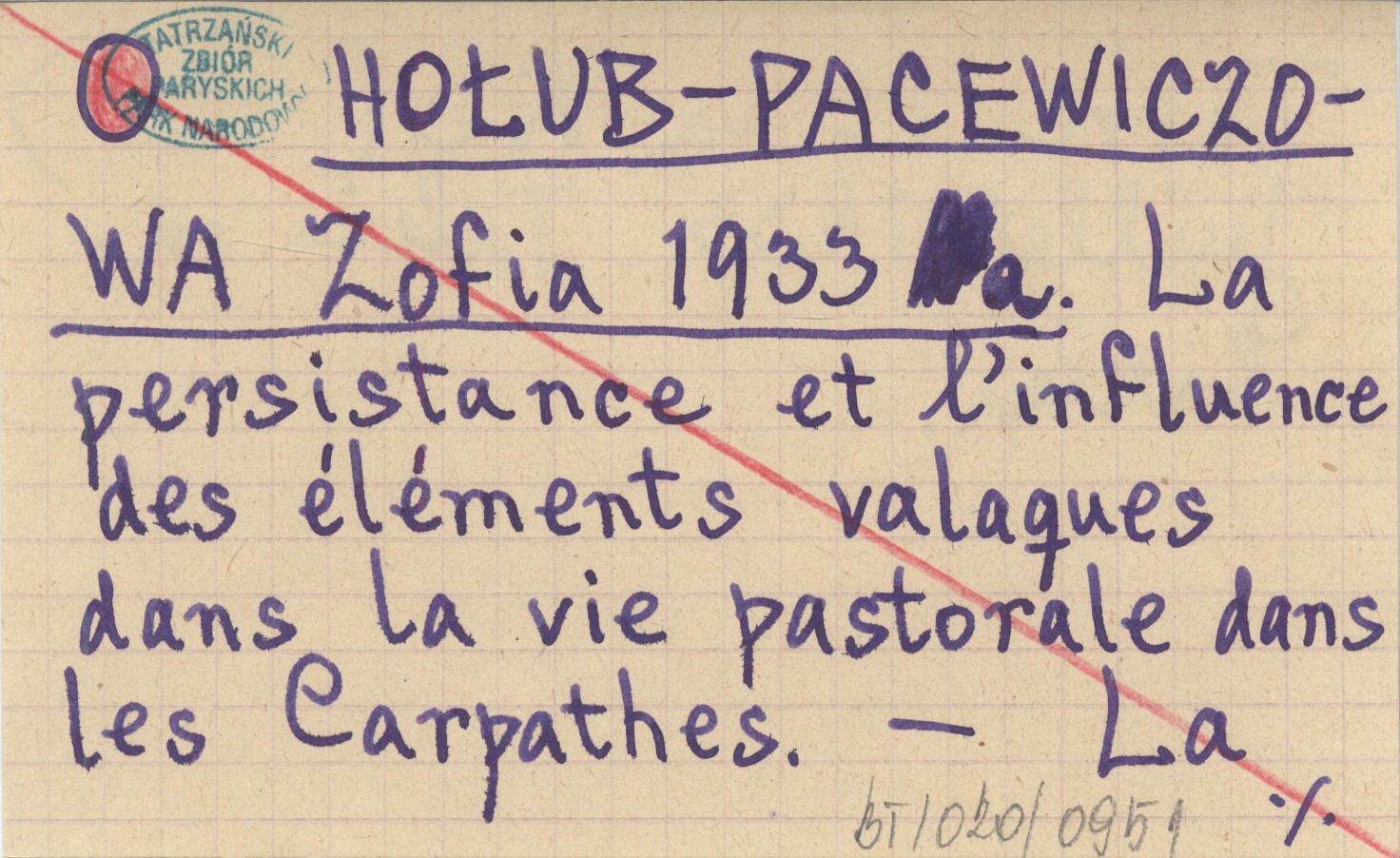 HOŁUB-PACEWICZOWA Zofia 1933 a La persistance et l'influence des éléments valaques dans la vie pastorale dans les Carpathes.