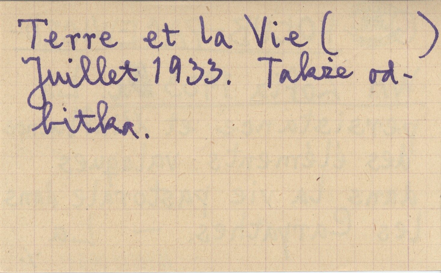 La Terre et la Vie, 07.1933. Także odbitka.