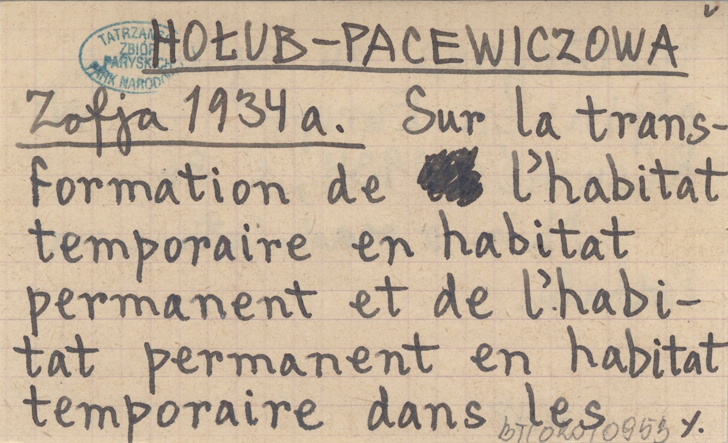 HOŁUB-PACEWICZOWA Zofja 1934 a Sur la transformation de l'habitat temporaire en habitat permanent et de l'habitat permanent en habitat temporaire dans les montagnes du systeme alpin en Europe.