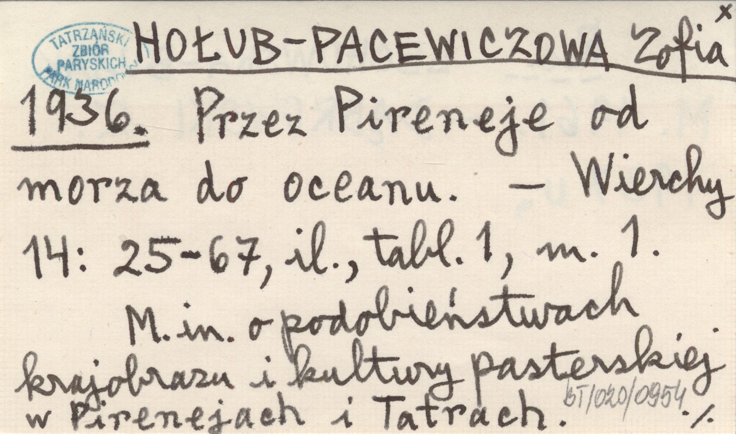 Wierchy, 14: 25-67, il., 1 k., 1 m. M. in. o podobieństwach krajobrazu i kultury pasterskiej w Pirenejach i Tatrach. REC: LECHOWSKA-BUJAK M. 1961. DĄBROWSKI Z. 1937 u.