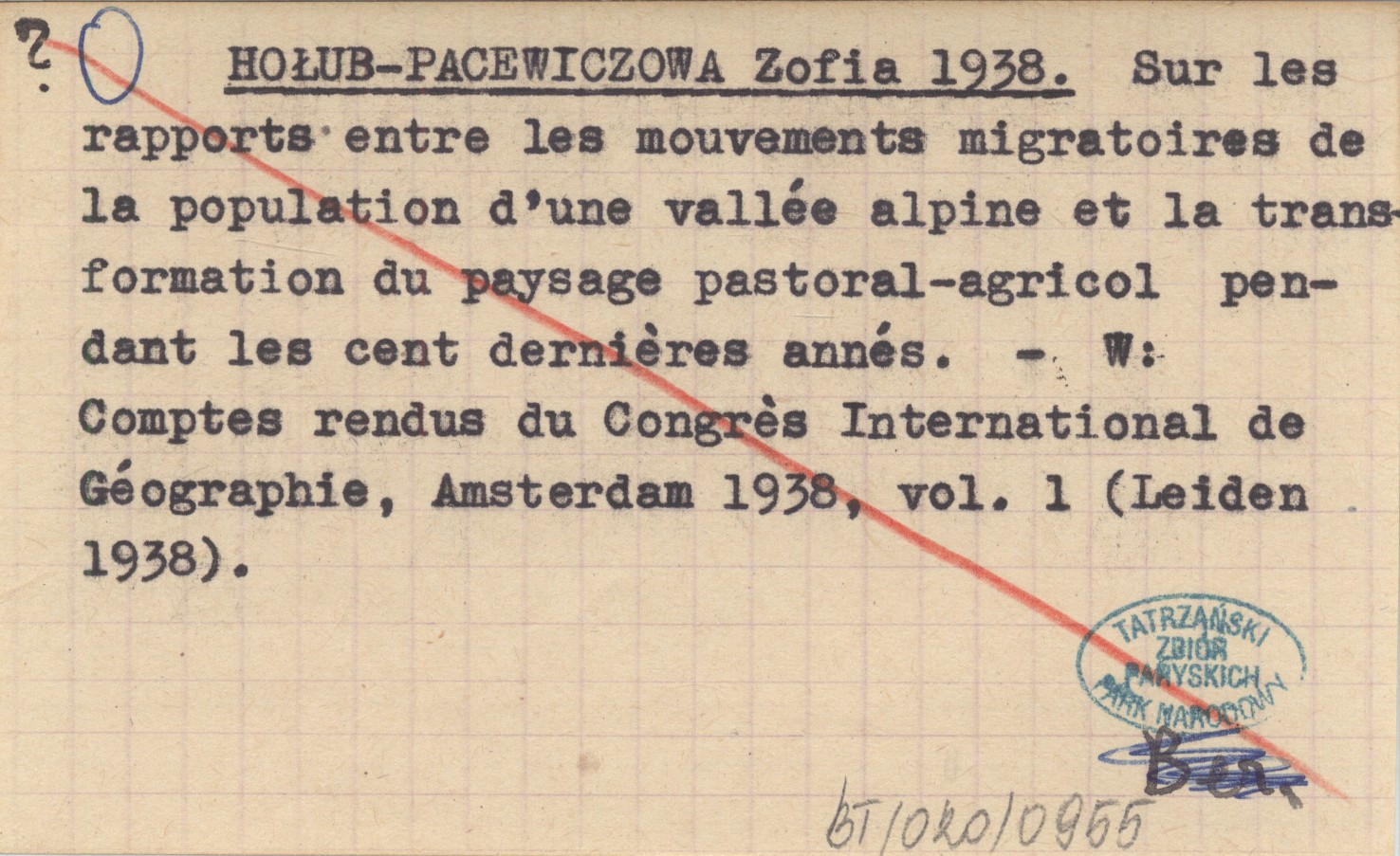 HOŁUB-PACEWICZOWA Zofia 1938 Sur les rapports entre les mouvements migratoires de la population d'une vallée alpine et la transformation du paysage pastoral-agricol pendant les cent dernieres annés.