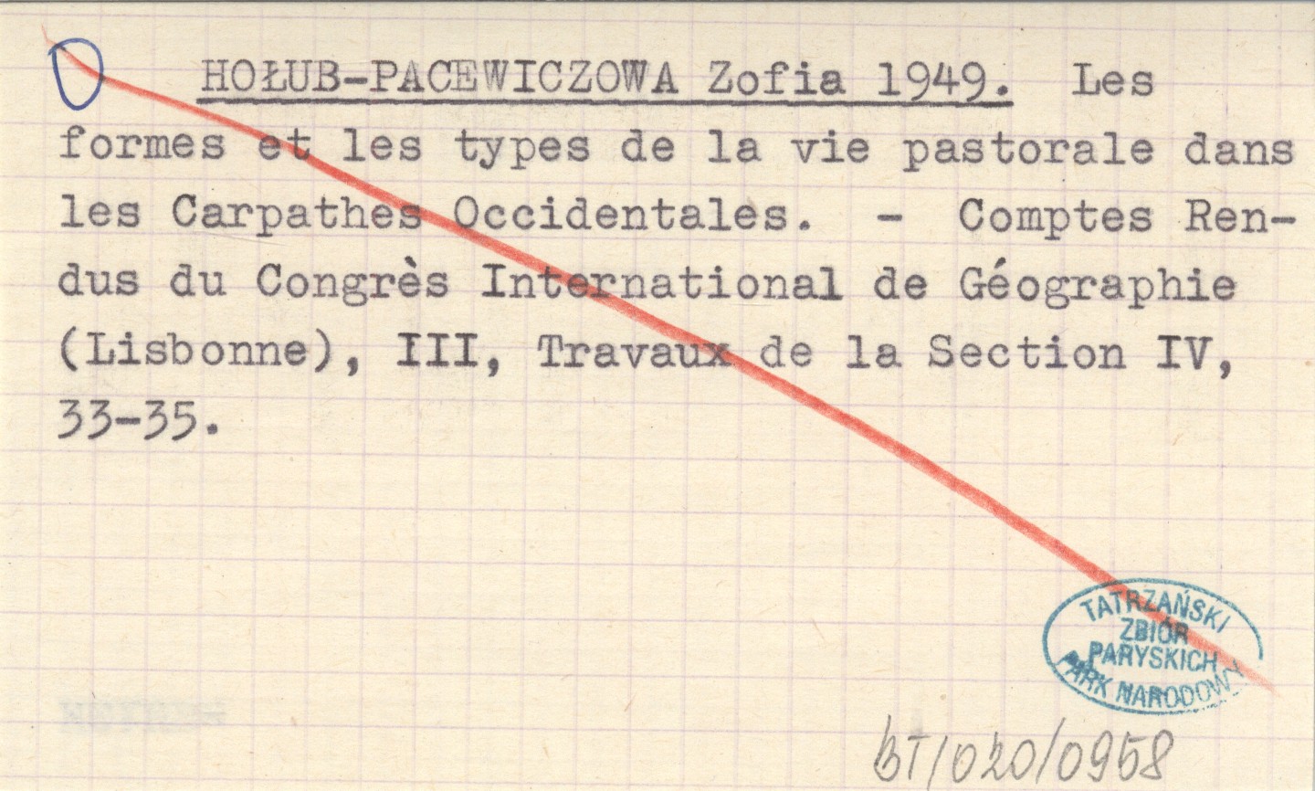 HOŁUB-PACEWICZOWA Zofia 1949 Les formes et les types de la vie pastorale dans les Carpathes Occidentales.