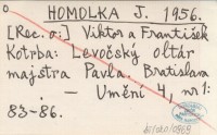 HOMOLKA J. 1956 Viktor a František Kotrba: Levočský oltár majstra Pavla. Bratislava.