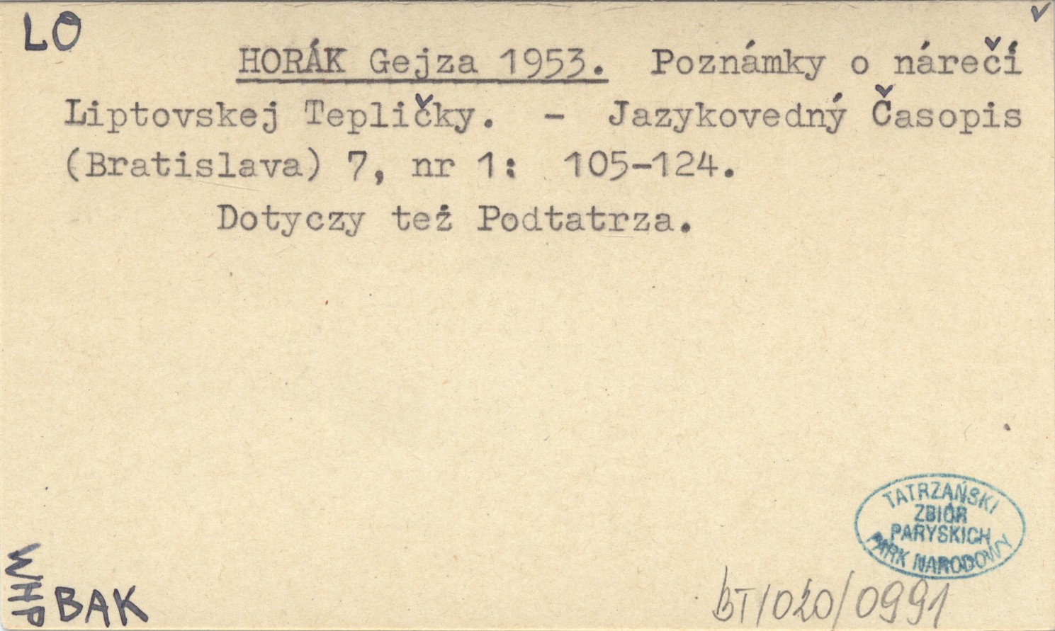 HORÁK Gejza 1953 Poznámky o nárečí Lipotvskej Tepličky.