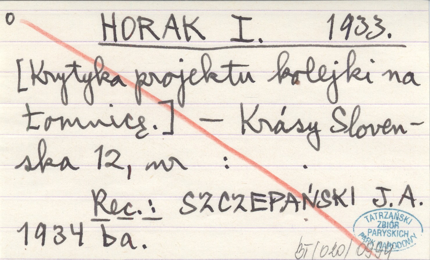 HORAK I. 1933 [Krytyka projektu kolejki na Łomnicę].