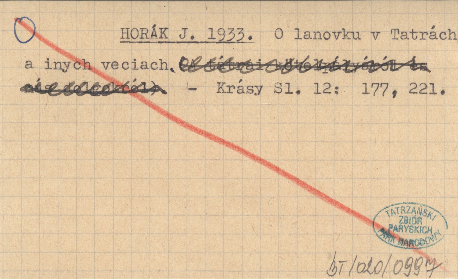 HORÁK J. 1933 O lanovku v Tatrách a inych veciach.