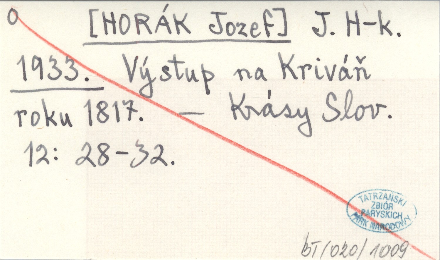 J. H-k. [HORÁK Jozef] 1933 Výstup na Kriváň roku 1817.