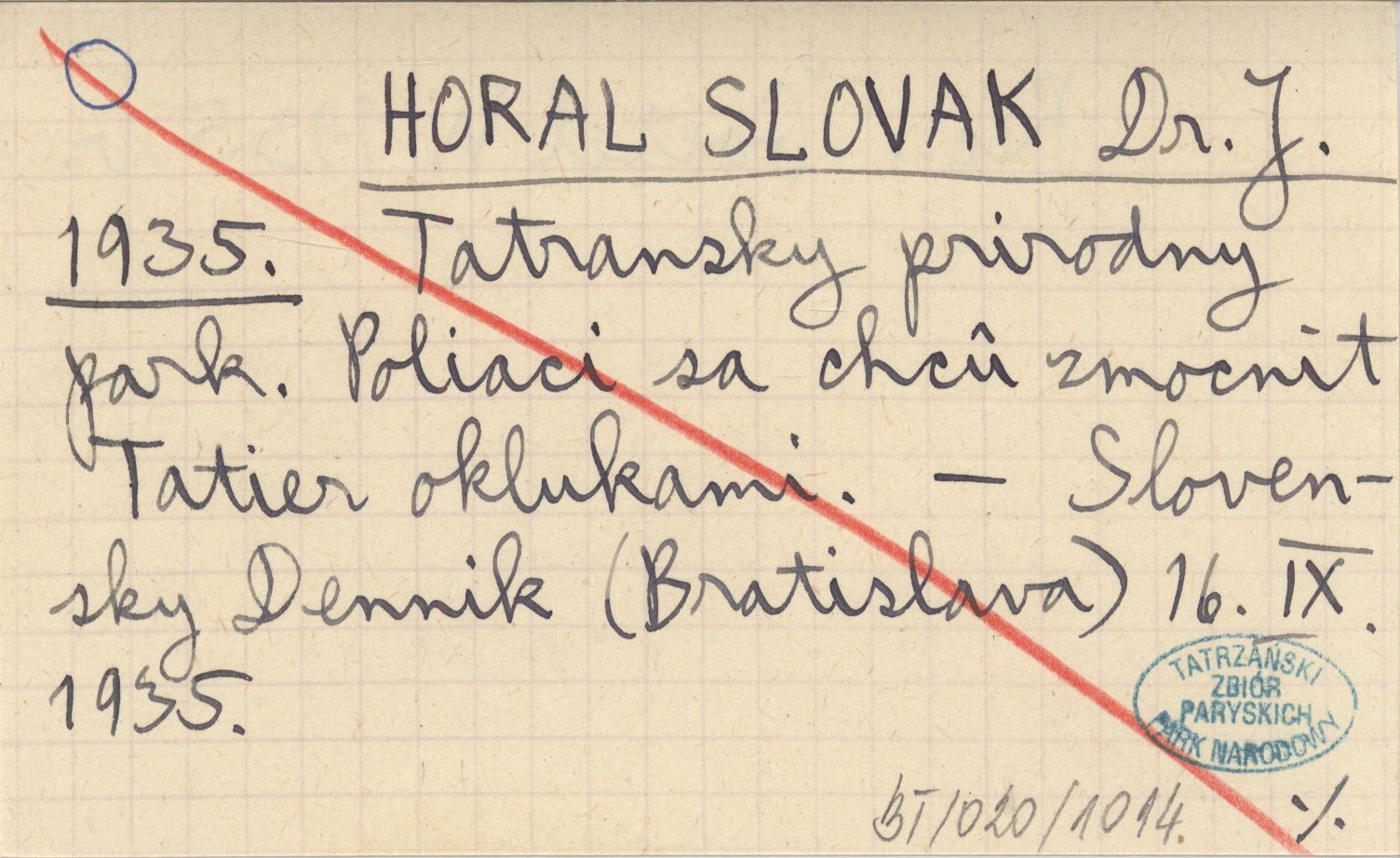 HORAL SLOVAK Dr. J. 1935 Tatransky prirodny park. Poliaci sa chcû zmocnit Tatier oklukami.