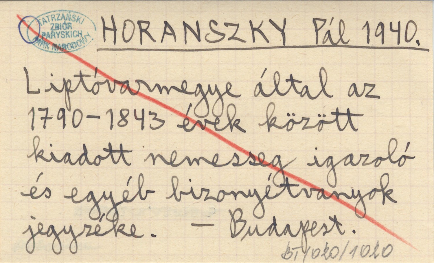 HORANSZKY Pál 1940 Liptóvarmegye által az 1790-1843 évek között kiadott nemesseg igazaló és egyéb bizonyétvanyok jegyzéke.