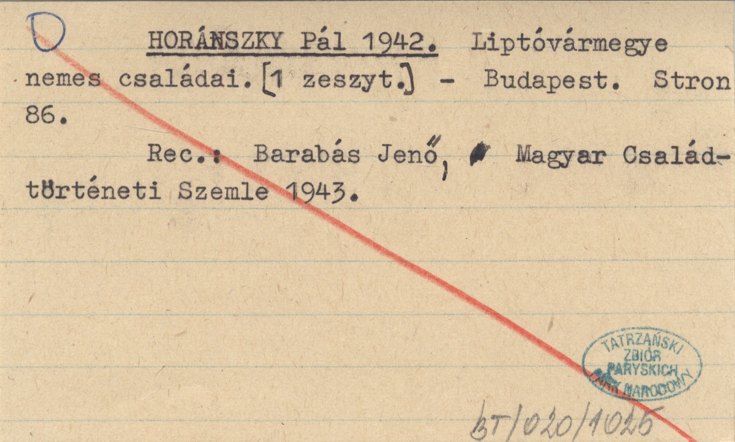 HORÁNSZKY Pál 1942 Liptóvármegye nemes családai. [1 zeszyt].
