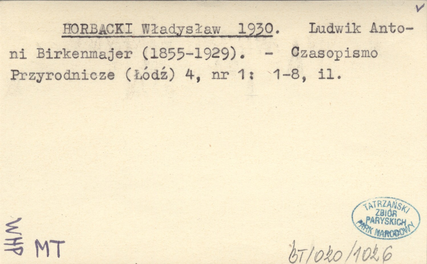 HORBACKI Władysław 1930 Ludwik Antoni Birkenmajer (1855-1929).